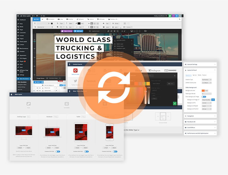 Revolution slider is responsive WordPress Slider Plugin that displays your content the beautiful way. Whether it’s a Slider, Carousel, Hero Scene or even a whole Front Page, the visual, drag & drop slider editor will let you create beautiful slides in minutes!